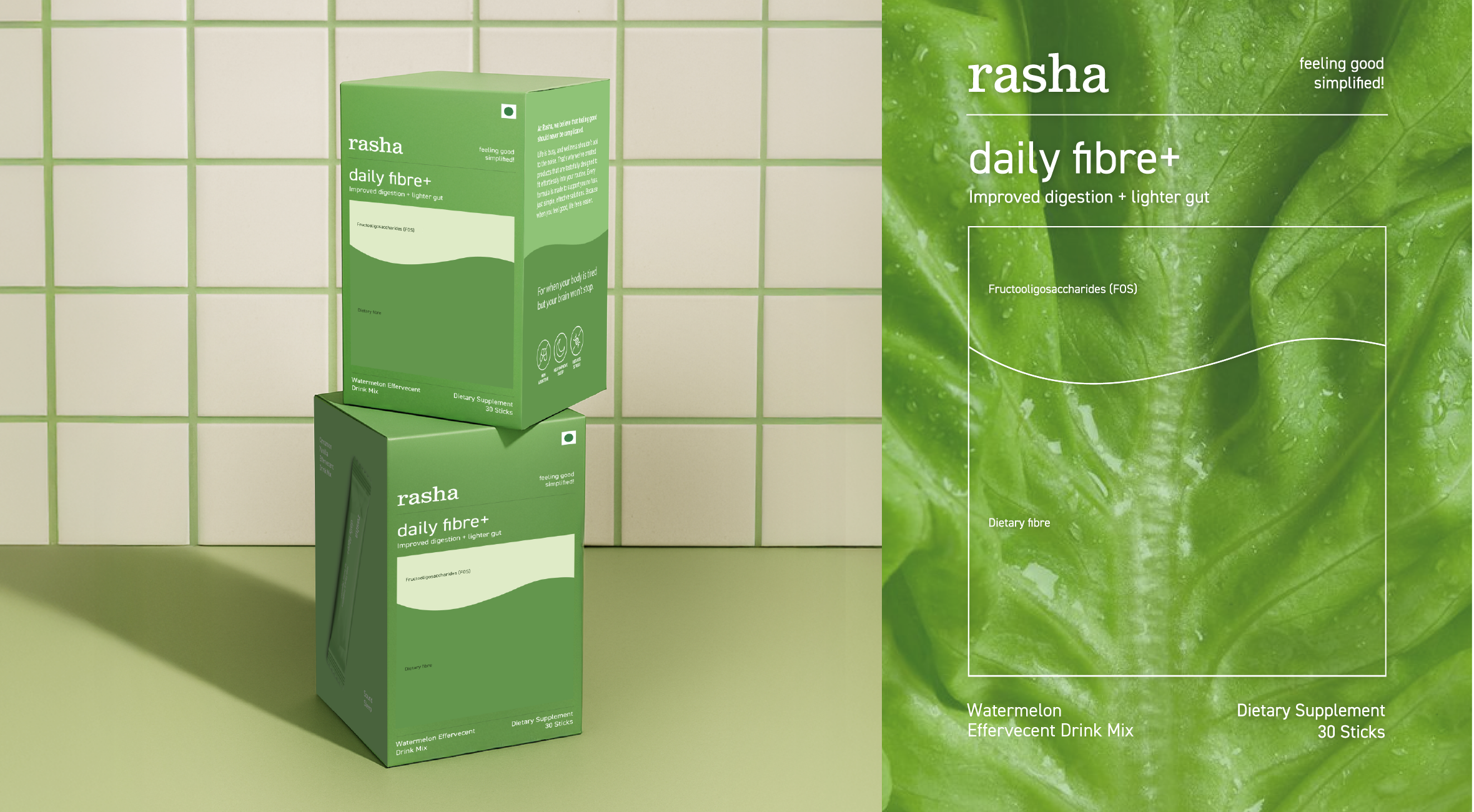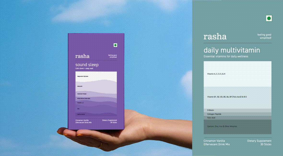 The result: RASHA stepped forward with purpose. Shelf presence sharpened, audience widened, and the brand now holds space in the wellness category as a quiet, clear authority designed for life in motion.